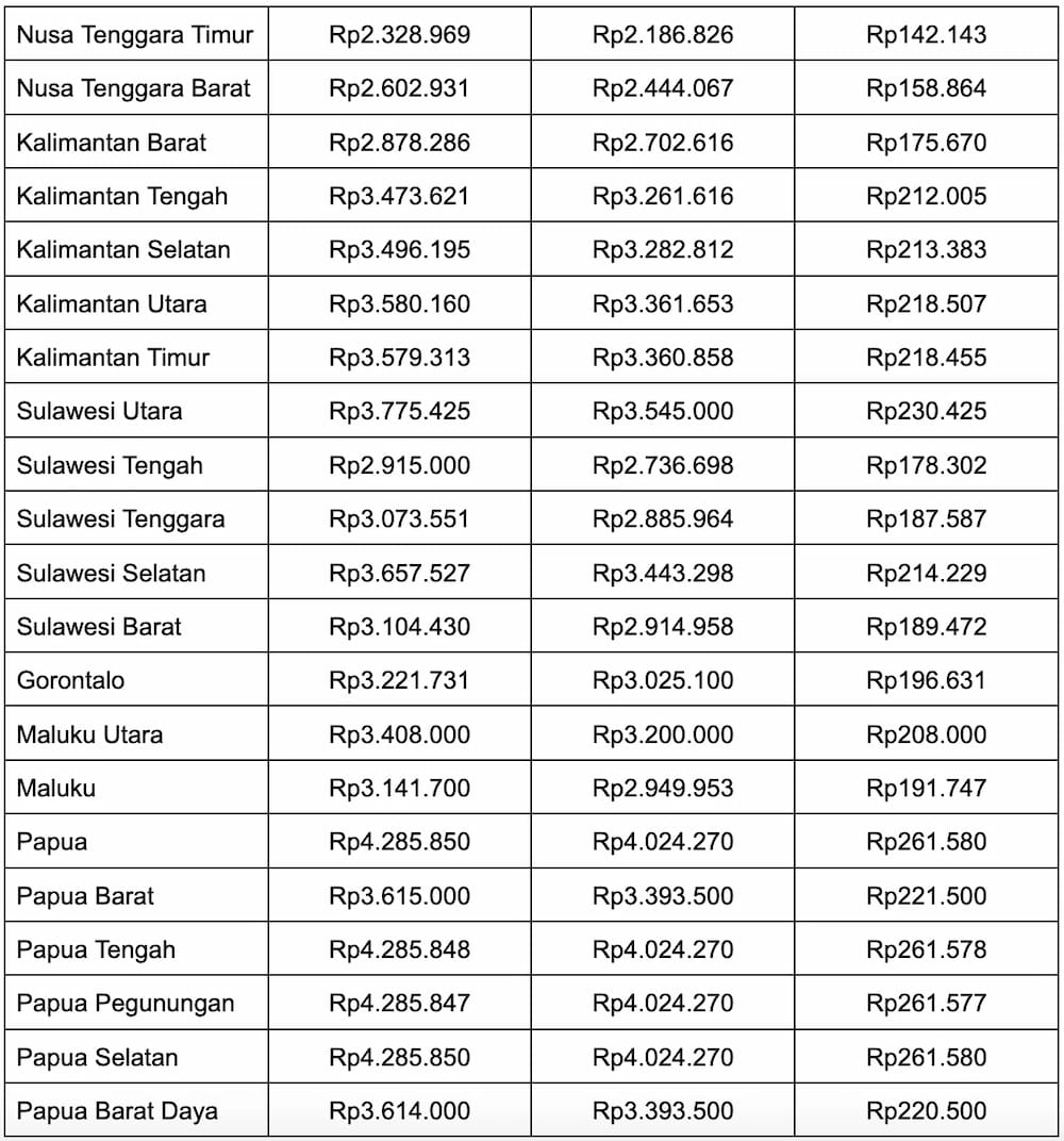 Sementara itu, UMR 2025 terendah di Indonesia masih sekitar Rp2 juta. Kenaikan UMR 2025 berlaku rata bagi provinsi dan kabupaten/kota sesuai Permenaker RI Nomor 16 Tahun 2024.
